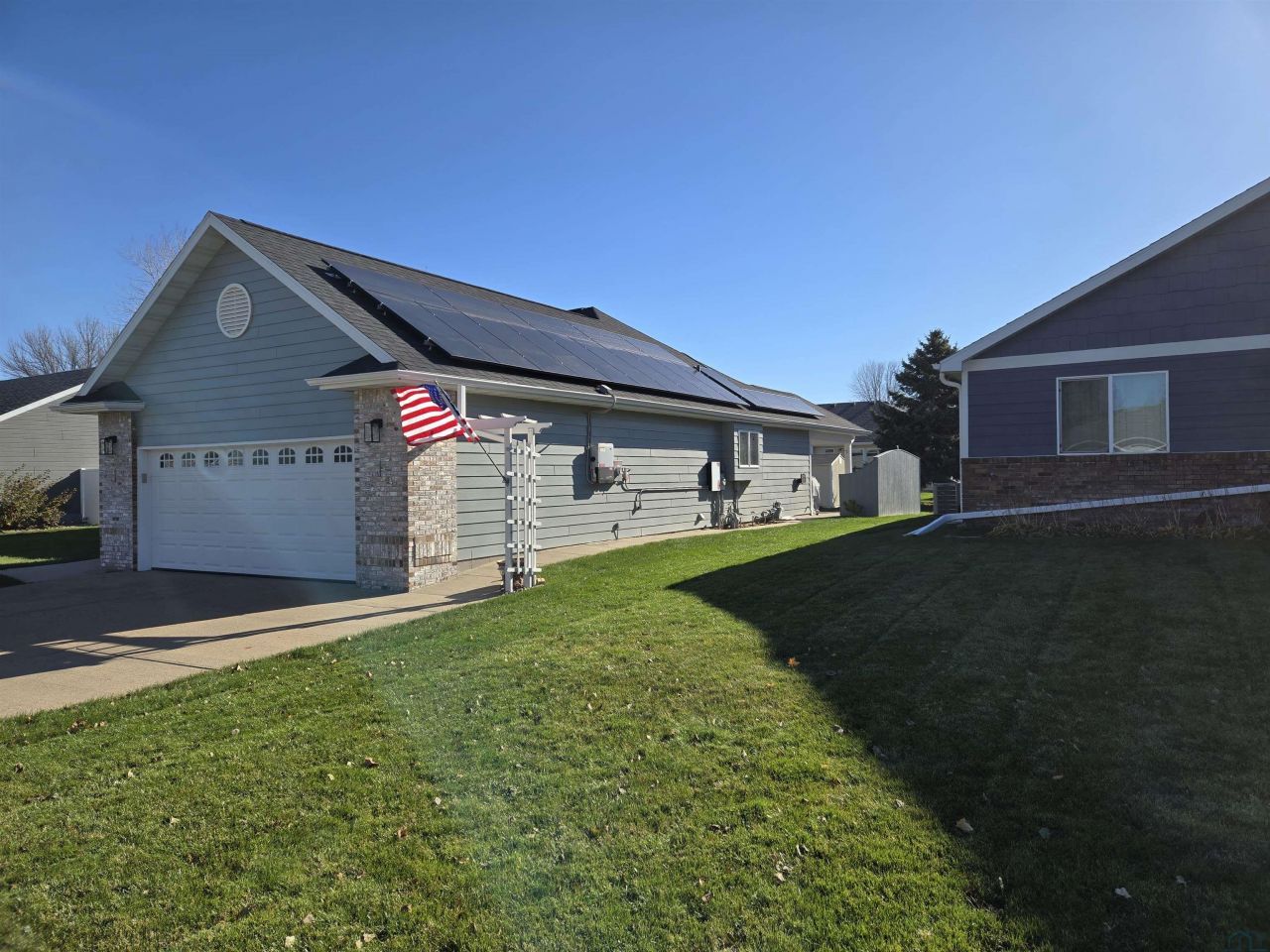 Enjoy the Pride of Ownership with the purchase of this nicely updated, meticulously maintained, and highly energy efficient property. This 3 bedroom, 2 3/4 bathroom home is move~in ready and features many updates: new quartz kitchen counter~tops and stainless~steel appliances; updated bathrooms including walk~in shower in Primary bathroom and new toilet fixtures; and brand~new carpet in all three main floor bedrooms, hallway, and great room (the new carpet will be installed prior to closing). The great room features a vaulted ceiling with a stunning fireplace surrounded by a brick feature~wall and a hardwood mantel. The open~concept kitchen, dining room and great room features a sliding patio door that opens to a cozy patio. The patio has a pergola (with ceiling fan) that overlooks a beautifully landscaped back yard which is irrigated and includes a quaint storage shed. The spacious Primary bedroom includes an en~suite bathroom with double sinks, new walk~in shower, and walk~in closet. A guest bathroom is conveniently located close to the two guest bedrooms. The main floor laundry room/drop zone is conveniently located directly off the garage. The finished basement includes a large family room including a big~screen TV with surround~sound; adjacent bar area with refrigerator, cabinetry with built~in wine~racks; spacious bedroom with egress window and adjacent walk~in closet; roomie three~quarter bathroom with make~up counter; utility room with utility sink, and a workshop with work bench and lots of storage. The property includes a twenty~five~unit solar panel system with two Tesla back~up batteries. The total installation cost of the system in 2022 was $47,000. The home is equipped with an energy monitoring software system which tracks energy usage and savings. The Seller will coordinate system training with the Installation Representative to train the new property owners..