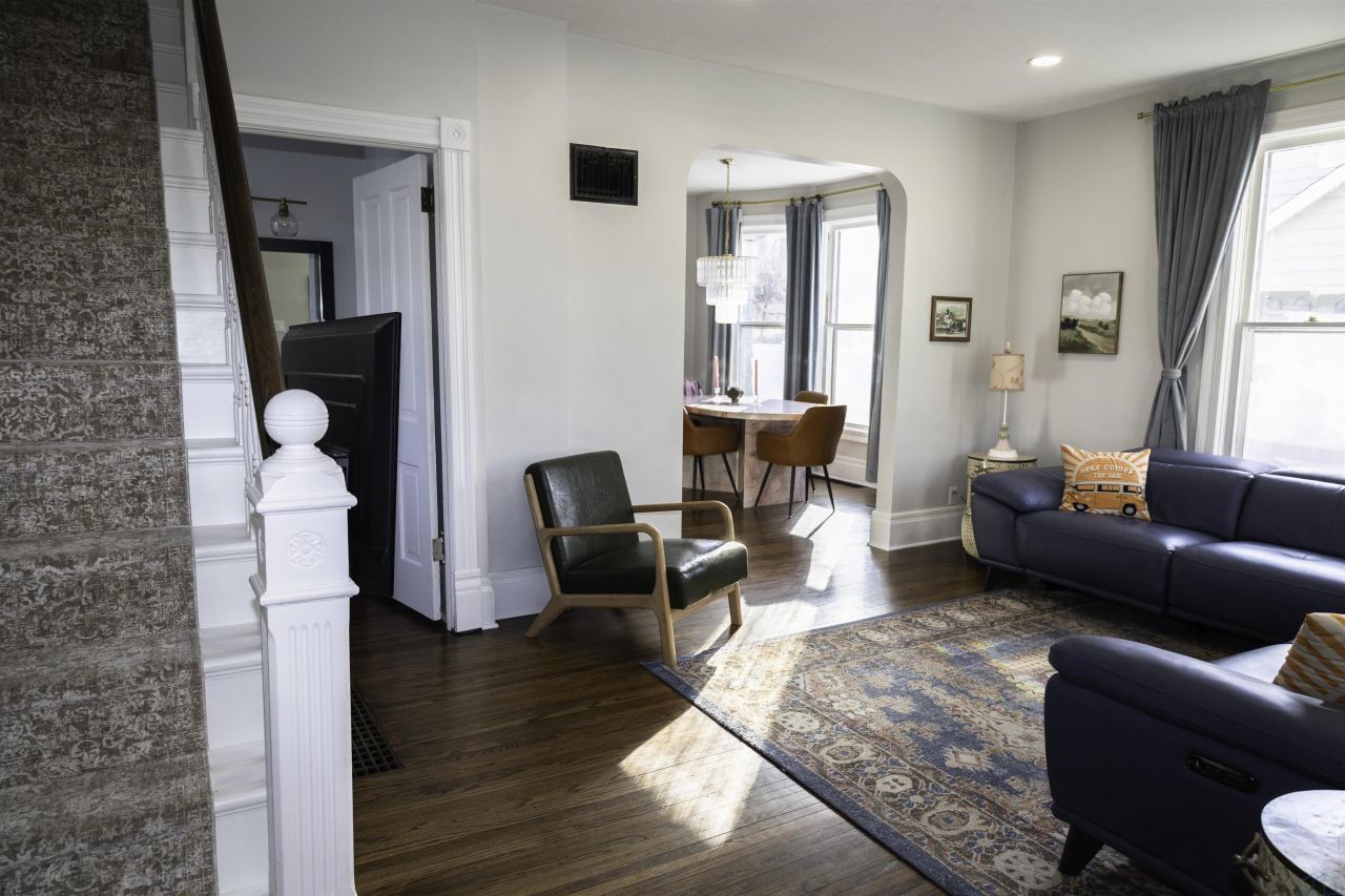 Fully renovated home showcasing high~end finishes and extensive upgrades throughout. Since 2020, improvements include kitchen, baths, plumbing, lighting, and electrical, along with a newly added third~floor master closet and vinyl privacy fence. Inviting front porches enhance both the main level and the second floor off the master suite. Enjoy heated Italian tile floors, a high~end kitchen with Cambria quartz countertops, spacious 7 x 6 butlers pantry, and appliances. Mechanical updates include furnace with ionizer and central air. Refinished hardwood floors and a stylish half bath add to the main level appeal. The upper levels feature second~floor laundry, a 3/4 bath with heated floors and steam shower, an expansive master with three~season porch access and an amazing 3rd floor closet, plus two additional bedrooms. The basement offers a flexible bedroom or den with cellar door access to the back lawn. Extra insulation added during renovations. Outside youll find a fenced backyard and oversized two~stall garage. An impressive home loaded with quality upgrades and thoughtful renovations throughout...